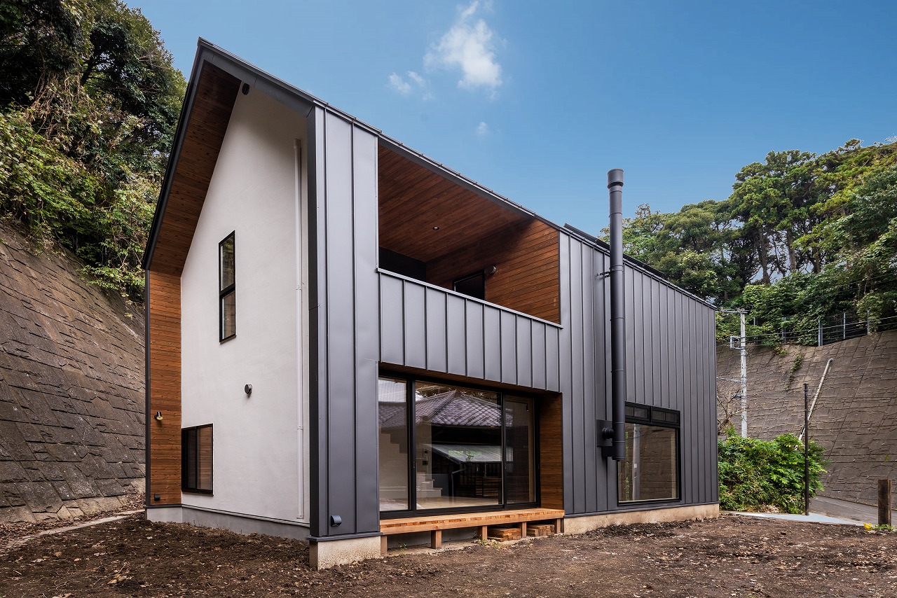 周囲を豊かな自然に囲まれたエリアに建つTさん邸は、シンプルなシャープさを保ちつつも、どことなくかわいらしい表情がある外観デザイン。「できるだけ子供の印象に残る、絵に描きやすいような家にしたかった」という希望をかたちに、切妻屋根にはこだわっています。