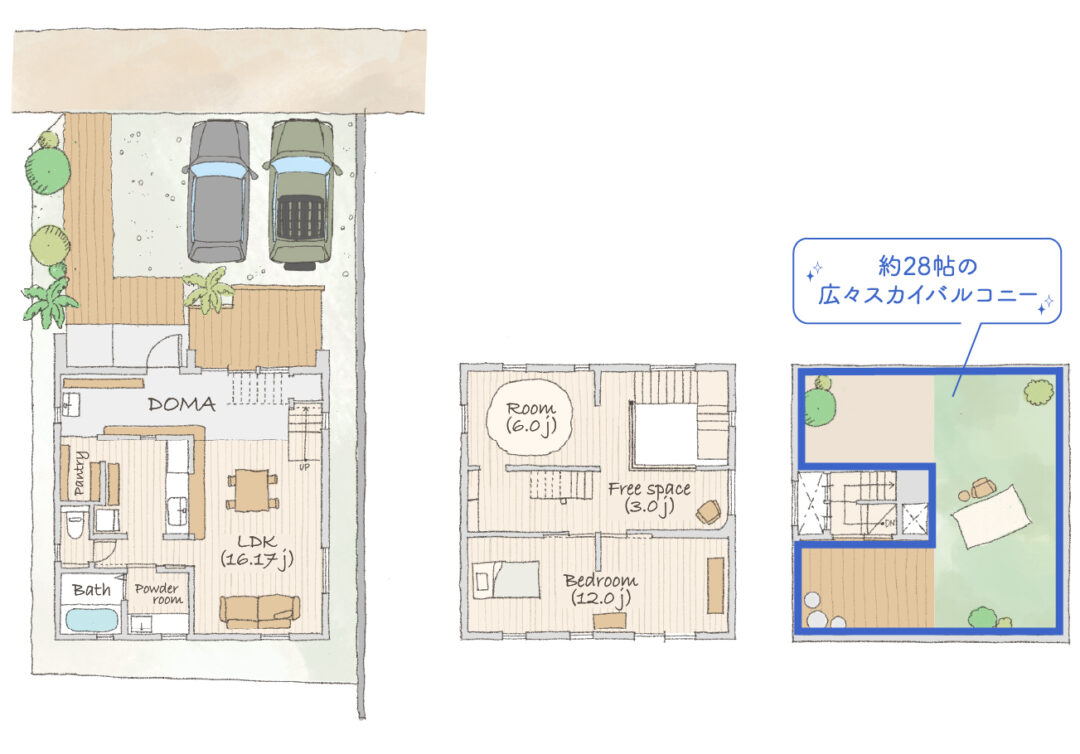 土間とスカイバルコニーという二つの空間が、生活にメリハリと自由を生み出す設計。