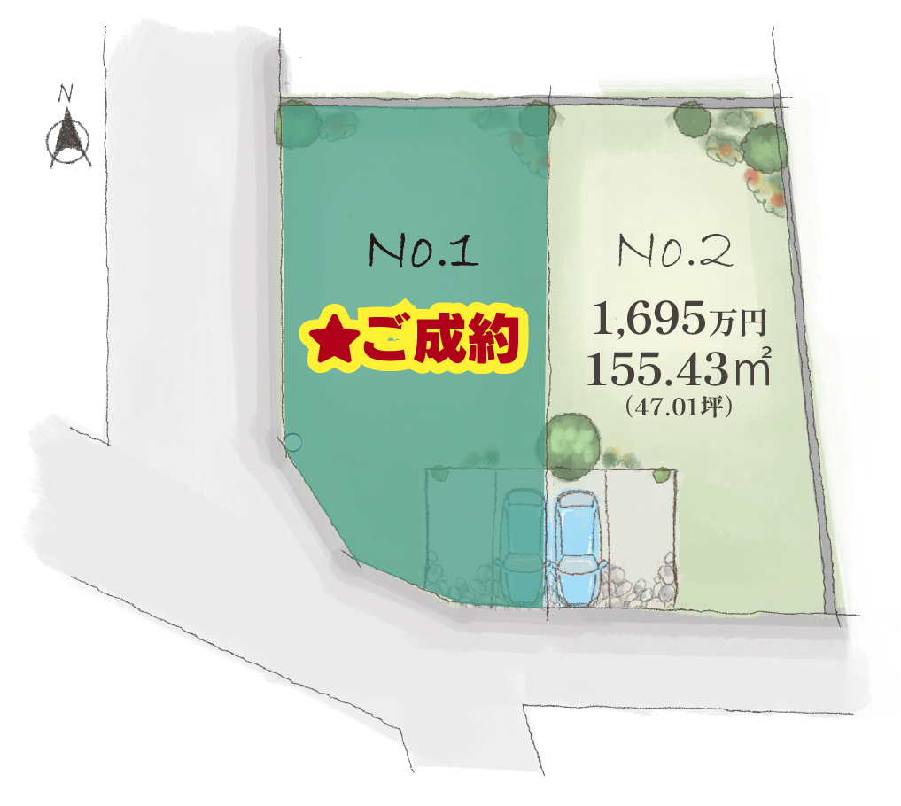 ※道路後退については行政と調整中につき、土地面積が変わる可能性があります