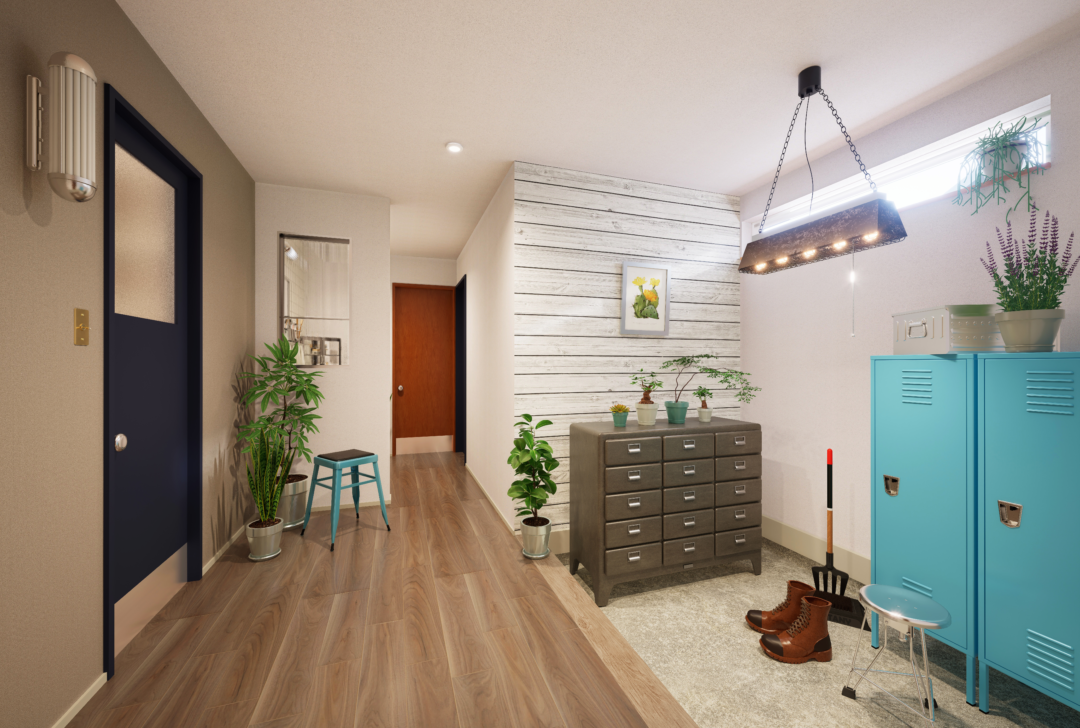 第二のリビングとして使用できる半屋外のポーチや広々とした土間、
