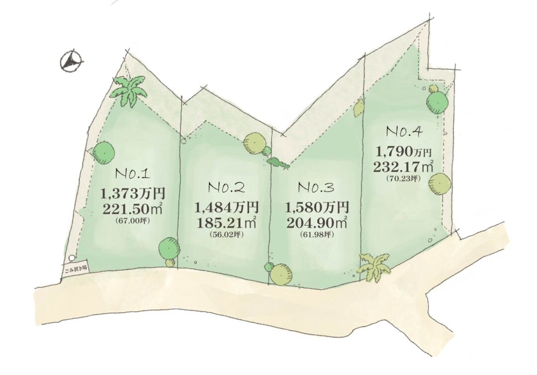 | 土地面積 | 185.21㎡(56.03坪)~232.17㎡(70.23坪) |