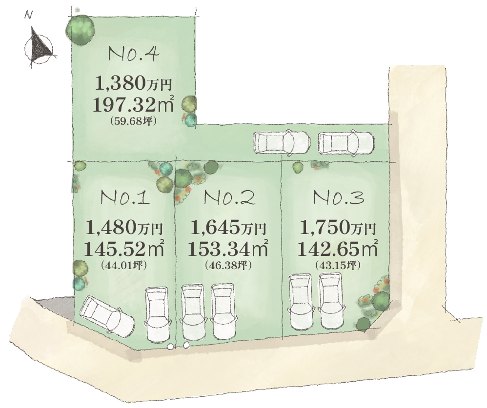 【売地】大磯町国府本郷 全4区画!二期販売開始【価格:1,380万円〜1,750万円】