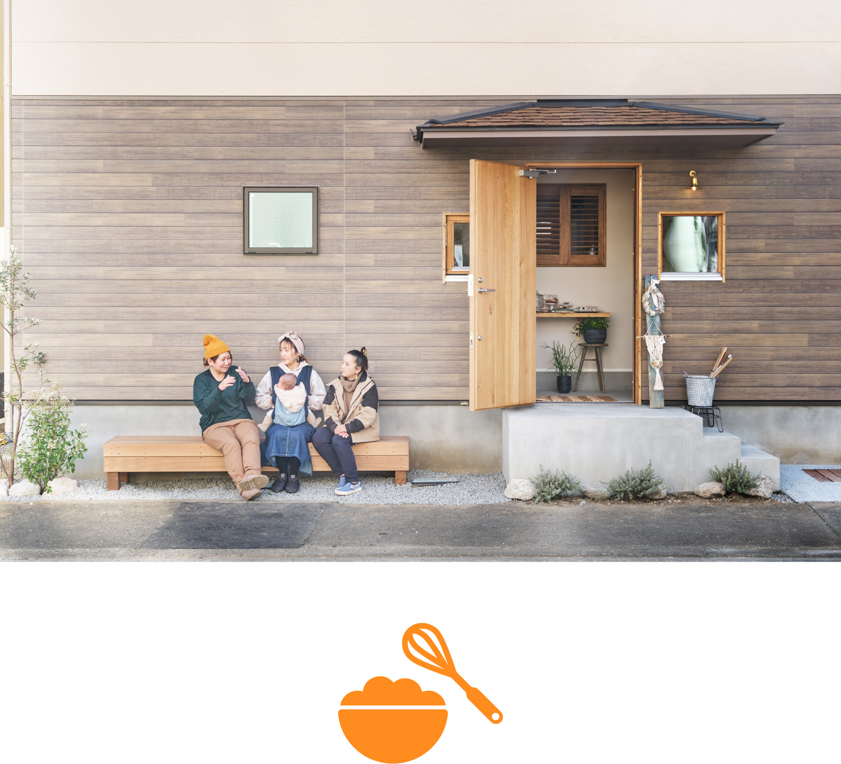 国府エリアに建てられたZERO-CUBEには、玄関とは別に独立した出入口のドアが……。そこから入ったところに、アイディア次第でさまざまに活用できそうな、とっておきの面白空間があるのです。この日は焼き菓子『菓子lab.H』さんとマクラメ『Homely Design』さん、ドライフラワー『syuiro』さんたちがその空間に集まり、ドアを開け放って、お家マルシェを開催!