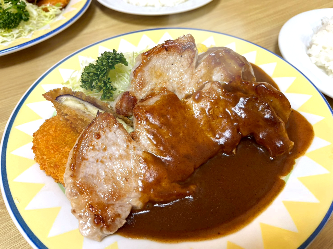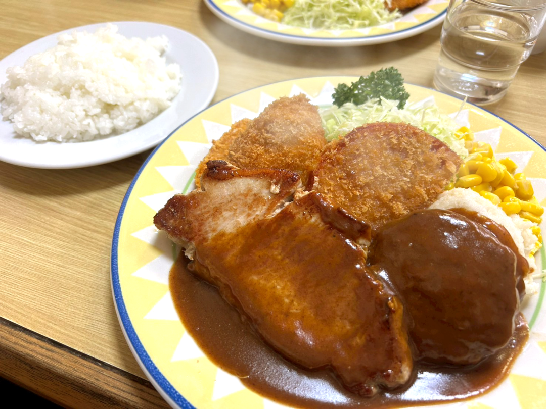 取材当日の限定セットは、ハムカツ・ヒレカツ・ハンバーグに加えて、Mさんオススメのポークソテー。運ばれてくると、さらにポテトコロッケと濃厚でもっちりとしたマッシュポテトまで添えられており、その圧倒的なボリュームに思わず目を見張りました!揚げ物はどれも揚げたてでサクサク、ポークソテーはデミグラスソースとの相性が抜群で、まさに絶品です。平塚でお腹も心も満たされたいときに、ぜひお腹を空かせて足を運んでみてはいかがでしょうか?
