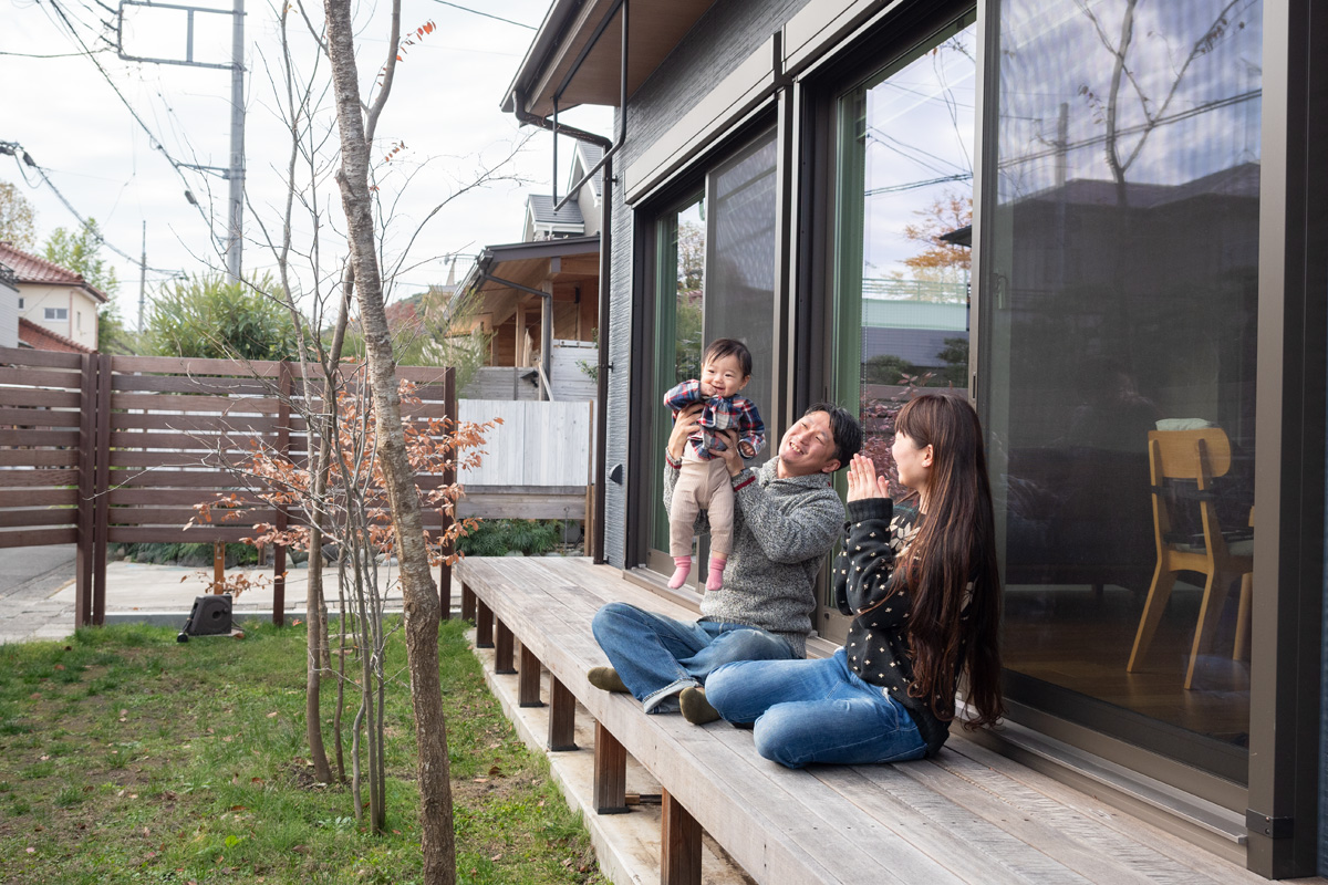 その先にある縁側は家族で朝食や七輪パーティ、プール遊びを楽しめるお気に入りの空間です。